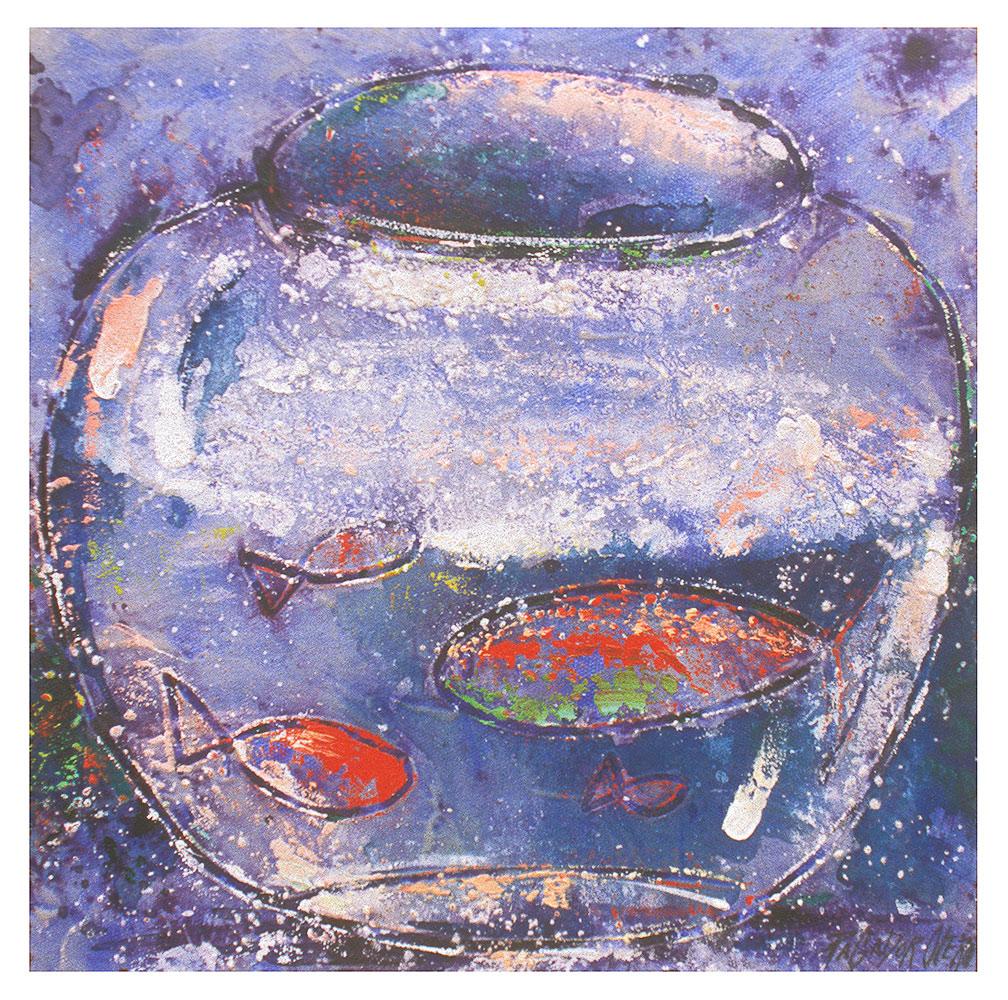 EL CIRCULO, el punto ó la pelota en la piscina, hacen alusión al ancestro, a la matriz, al claustro materno; el uno en el todo y viceversa, sin pérdida de la peculiar individualidad del mismo; un mundo en otros mundos, una estrella en un universo de estrellas y como sustento plástico de todo ello: luz, contraste, forma y color en sintonía y para el ojo.