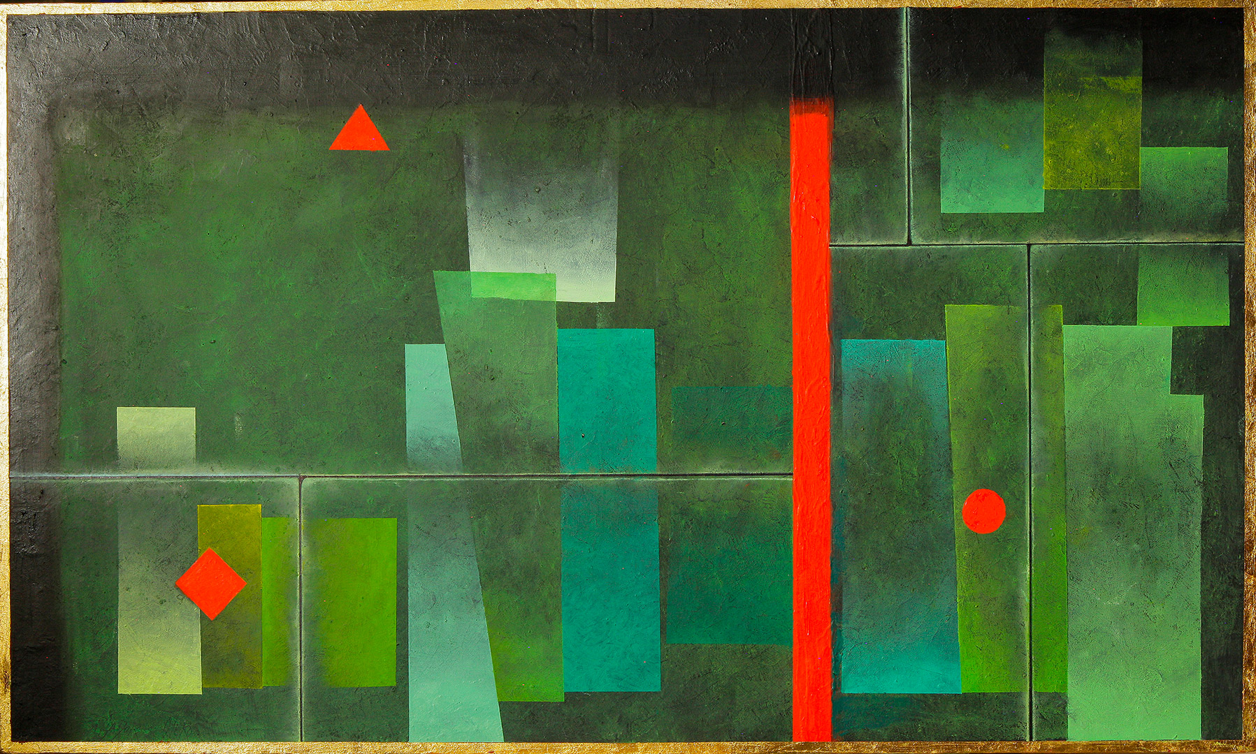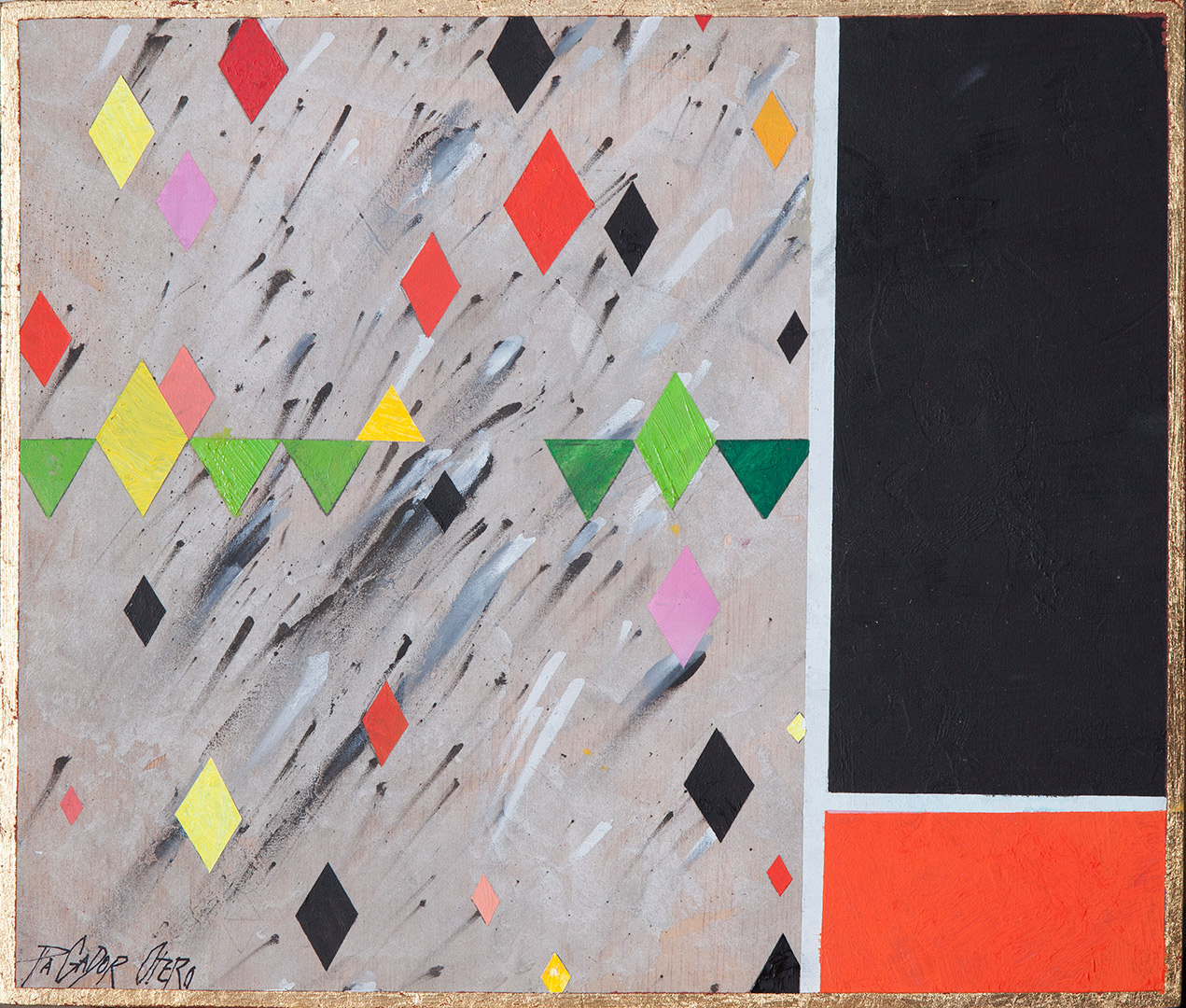 Pero volviendo a la geometría, algunos títulos de los cuadros son inventados; otros responden a paisajes en los que me he inspirado; otros son recuerdos de Badajoz (mi ciudad natal) y otros responden a nombres de por aquí.